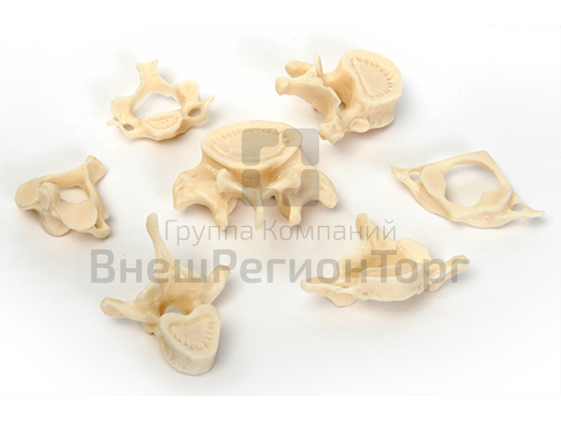 В набор входят 4 шейных, 2 грудных, 1 поясничный позвонки.