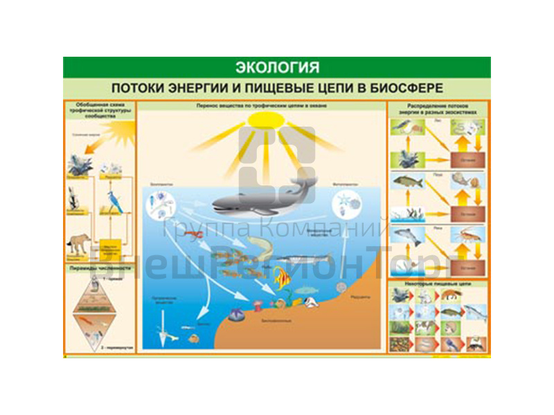 Подробное описание Таблица "Потоки энергии и пищевые цепи в биосфере" 70х100 см