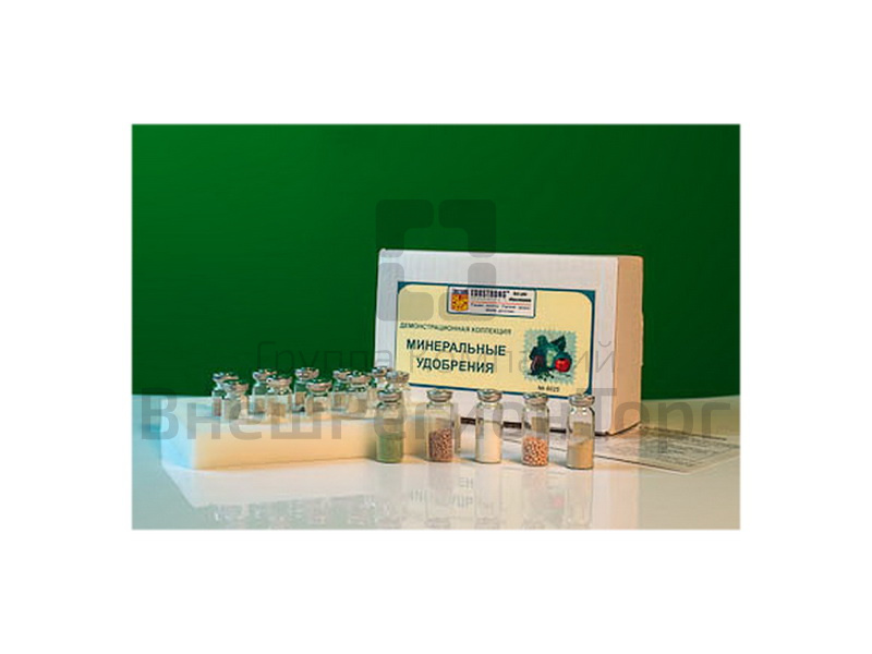 Состав коллекции: суперфосфат двойной, калий хлористый, нитрат калия, карбамид (мочевина), аммиачная селитра, натрий азотнокислый, селитра кальциевая, сульфат аммония, аммофос, диаммофоска, нитрофоска, нитроаммофоска, доломитовая мука, железный купорос, сульфат магния.