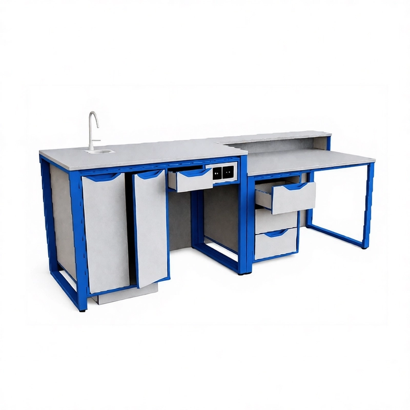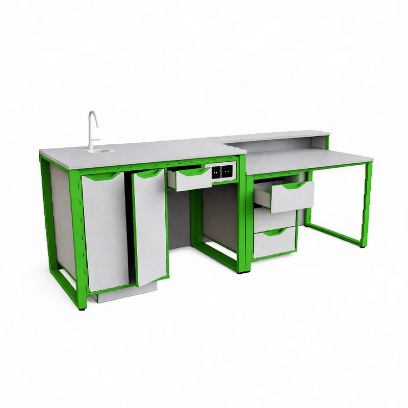 Стол демонстрационный на м/каркасе для кабинета химии/биологии с сантехникой и розетками, ЛДСП 26мм