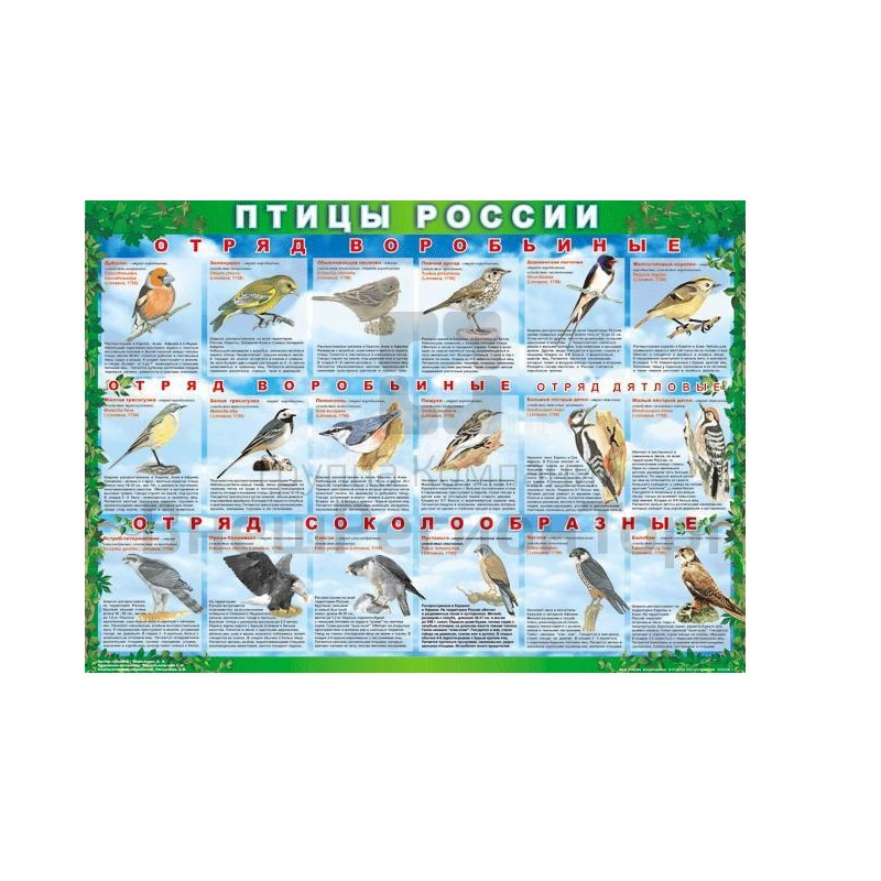 Подробное описание Комплект таблиц Птицы России 4 листа 70х100 винил