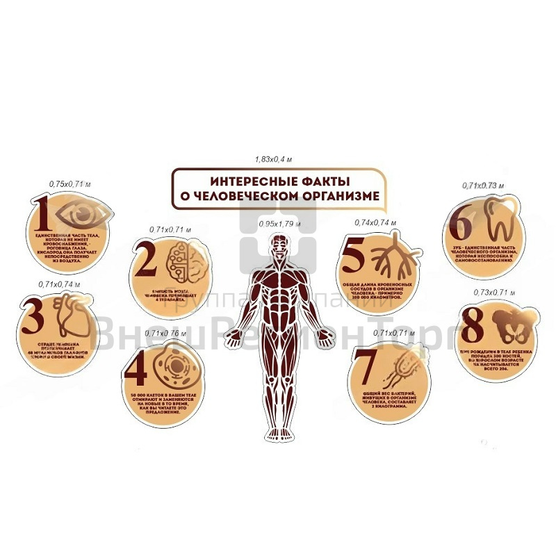 Подробное описание Комплект стендов для кабинета биологии "Интересные факты о человеческом организме"