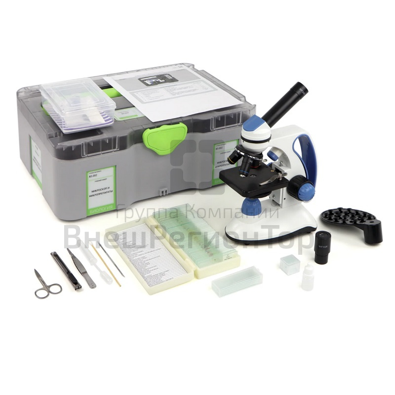 Учебный комплект с микроскопом и готовыми микропрепаратами предназначен для изучения клеток, тканей, микроорганизмов и биологических структур. Набор включает современный микроскоп с LED-подсветкой, сменные объективы и держатель для смартфона, а также более 40 микропрепаратов по ботанике, зоологии, анатомии и общей биологии.