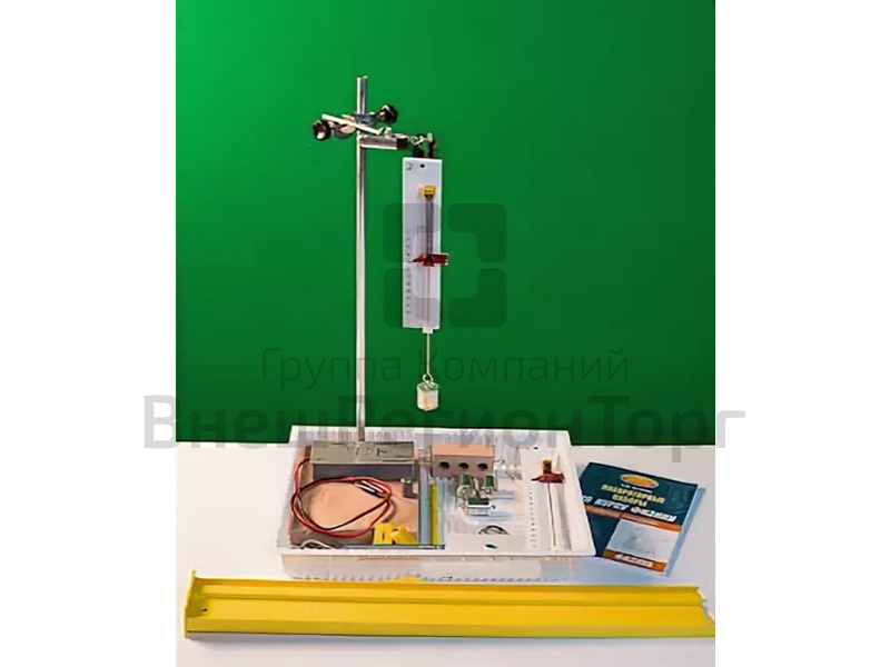 - штатив (основание из бука, стойка алюминиевая длиной 50 см, диаметром 10 мм, муфта - 1 шт., лапка - 1 шт.) с креплением для наклонной плоскости (пластиковый стержень) - 1 шт.,