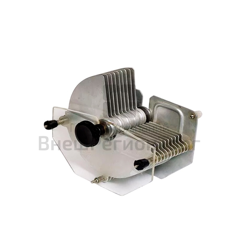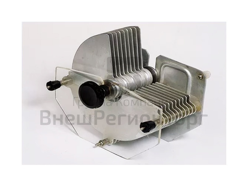Конденсатор состоит из полукруглых металлических неподвижных пластин статора и подвижных пластин ротора. При повороте рукоятки прибора пластины ротора входят в воздушные промежутки пластин статора. Пластины изготовлены из алюминия.