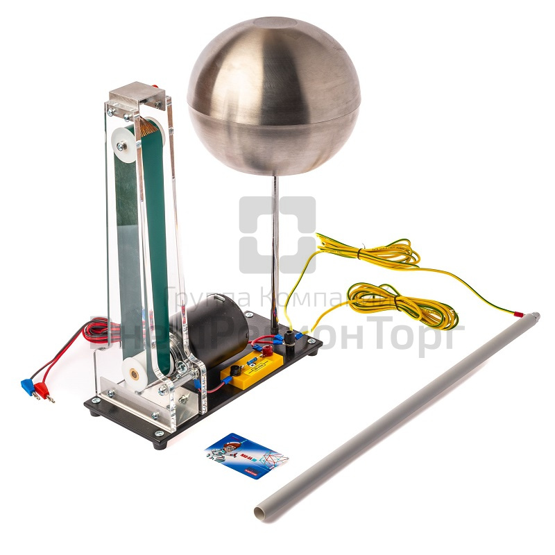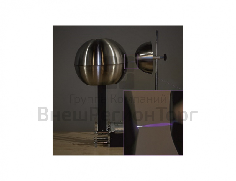 - Заряжаемая до высокого напряжения металлическая сфера (съемная, для демонстрации устройства генератора Ван-де-Граафа)