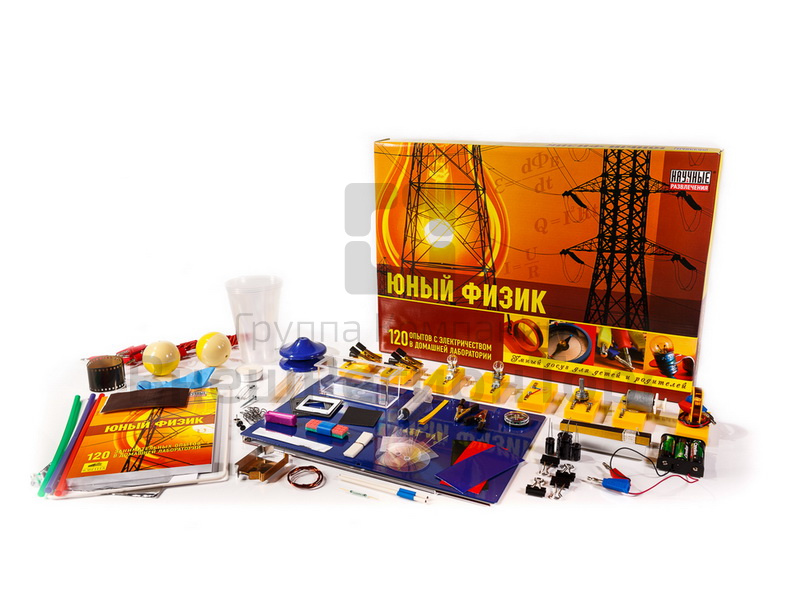 120 опытов! Юный исследователь получит навыки построения электрических цепей, проведет опыты с резисторами, конденсаторами и диодами, узнает о свойствах жидкостей, на практике познакомится с теорией строения вещества.