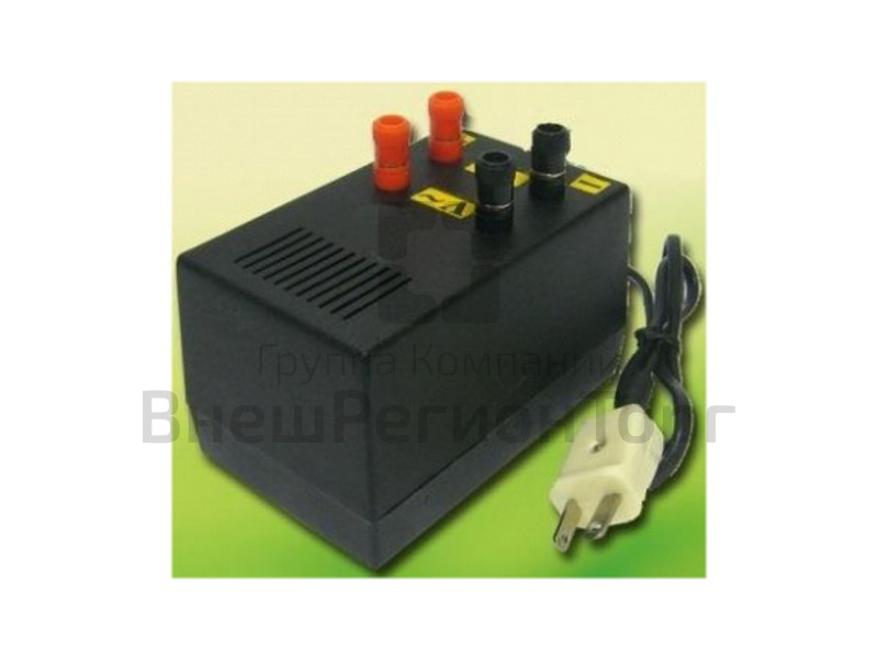 Предназначен для снижения и преобразования входного переменного напряжения 42 В в переменное напряжение с действующим значением 4,5 В и в пульсирующее напряжение со средним значением 4,5 В. Выходные напряжения поступают на разделенные выходы, маркированные знаком ~ и (+, –). Источник имеет защиту от превышения входного напряжения и от короткого замыкания по выходному напряжению. Снабжен вилкой, согласованной со школьной розеткой лабораторного стола.