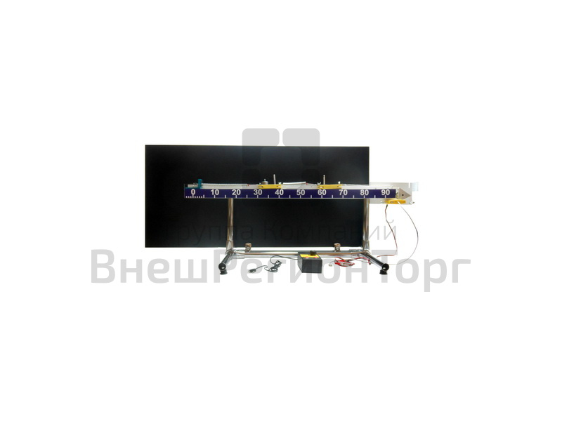 Установка собрана на основе рамной конструкции из стальных труб, устанавливаемой на лабораторном столе, и в качестве основных элементов включает в себя горизонтальный рельс, электродвигатель, тележки на магнитной подвеске. Установка комплектуется пружинами двух различных значений жесткости. Для питания двигателя используется источник постоянного тока. Регистрация частоты вынуждающей силы осуществляется с помощью оптоэлектрического датчика, прерыватель для которого устанавливается на валу электродвигателя. Измерение амплитуды и частоты колебаний тележки проводится с помощью цифрового ультразвукового датчика расстояния. Две тележки, входящие в состав установки, имеют разные аэродинамические сопротивления, которые отличаются друг от друга не менее чем в 9 раз. Масса груза такая, что при установке его на тележку с малым аэродинамическим сопротивлением обеспечивается равенство масс тележек.
