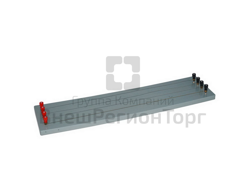 Прибор представляет собой пластмассовую панель с универсальными зажимами, между которыми закреплены проволоки одинаковой длины из различных материалов.