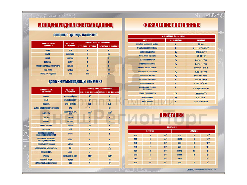 Подробное описание Стенд "Международная система единиц. Физические постоянные. Приставки"
