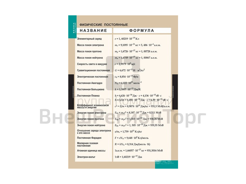Подробное описание Таблица 100х140 "Физические постоянные"