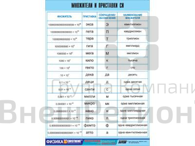 Подробное описание Таблица демонстрационная "Множители и приставки СИ"