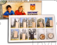 Продольные срезы перечисленных растений, а также поперечные срезы ели и осины демонстрируют структуру, цвет и текстуру древесины. Натуральные материалы сопровождают 8 цветных фотографий общего вида растений. Фотографии напечатаны на картоне и ламинированы глянцевой пленкой. Образцы пронумерованы.
