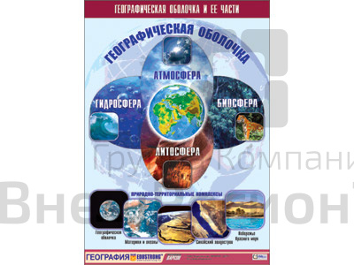 Подробное описание Таблица демонстрационная "Географическая оболочка и ее части", 100x140 см.