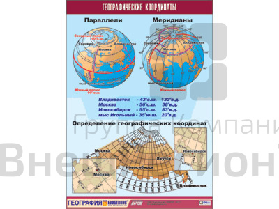 Подробное описание Таблица демонстрационная "Географические координаты", 70x100 см.