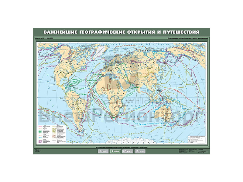 Подробное описание Учебная карта "Важнейшие географические открытия и путешествия", 100х140