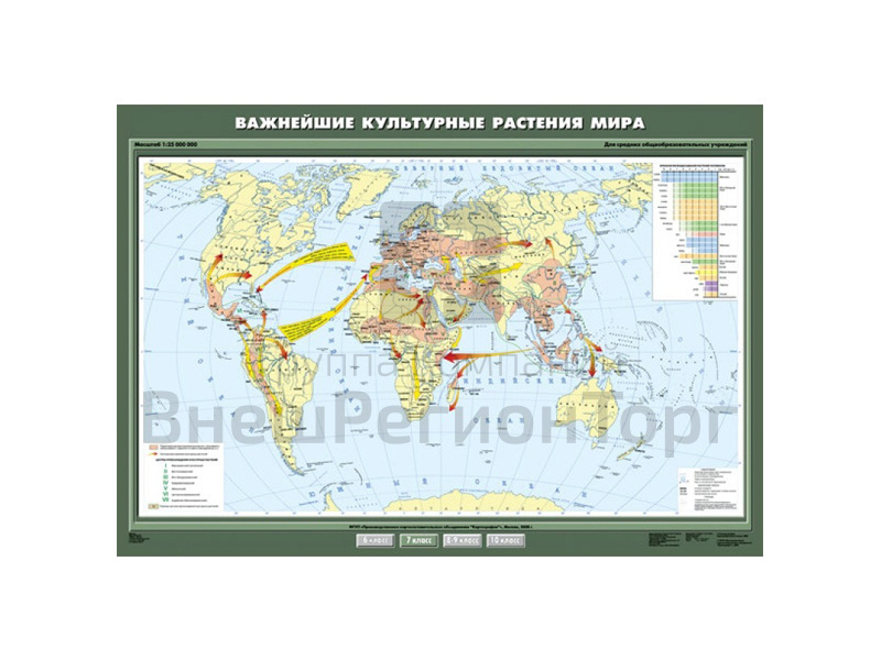 Подробное описание Учебная карта "Важнейшие культурные растения мира", 100х140