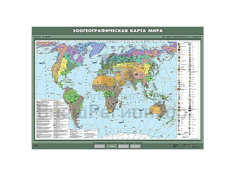 Подробное описание Учебная карта "Зоогеографическая карта мира", 100х140