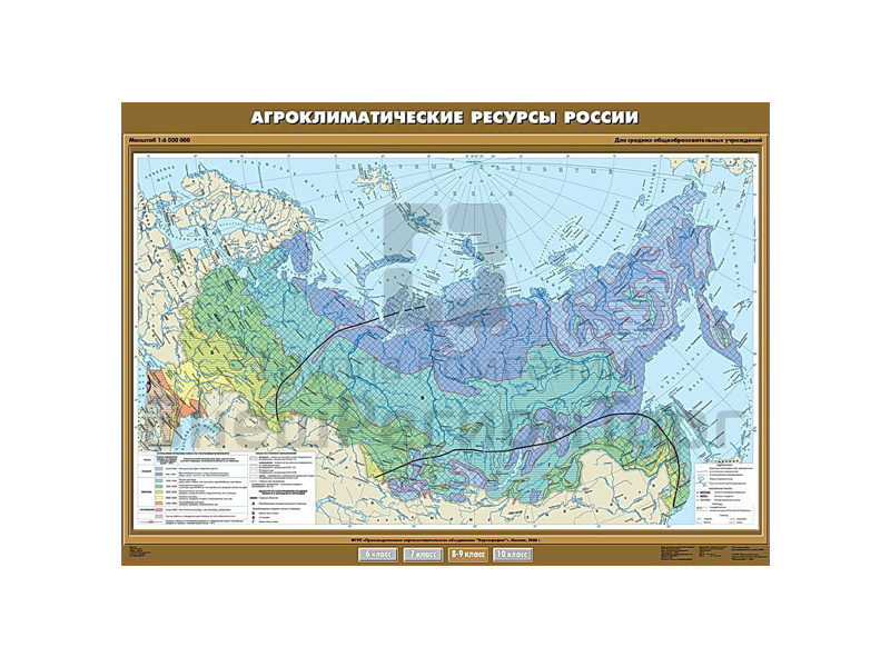 Подробное описание Учебная карта "Агроклиматические ресурсы России", 100х140