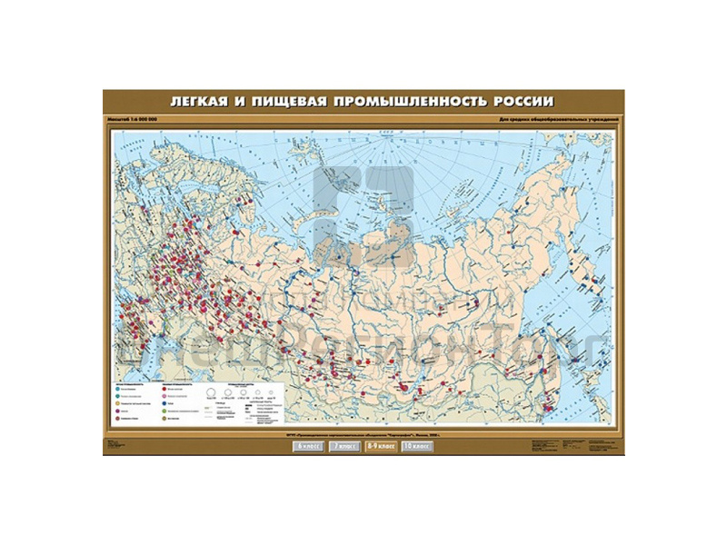 Подробное описание Учебная карта "Легкая и пищевая промышленность", 100х140