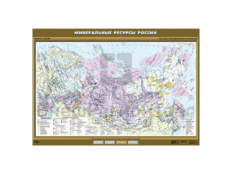 Подробное описание Учебная карта "Минеральные ресурсы России", 100х140