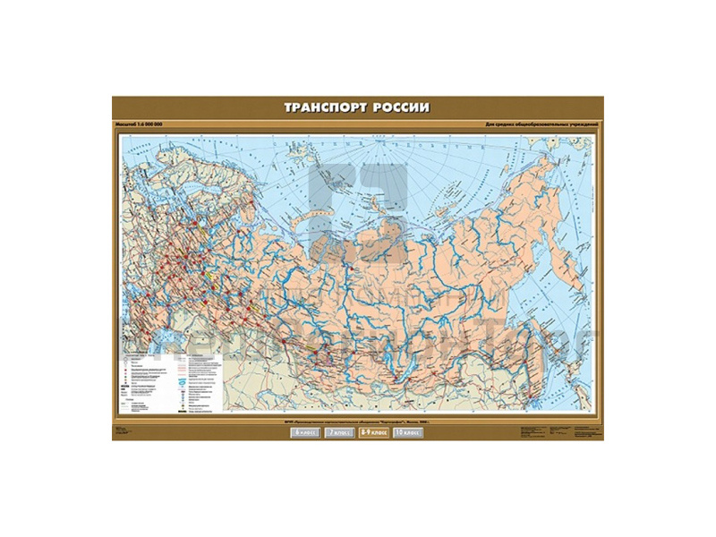 Подробное описание Учебная карта "Транспорт России", 100х140