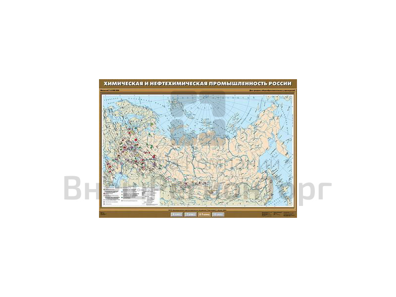 Подробное описание Учебная карта "Химическая и нефтехимическая промышленность России", 100х140