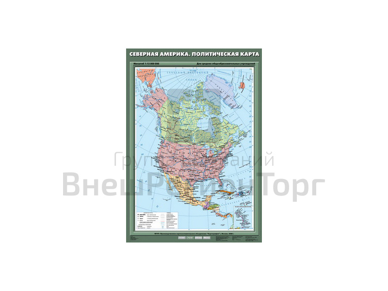 Подробное описание Учебная карта "Северная Америка. Политическая карта", 70х100