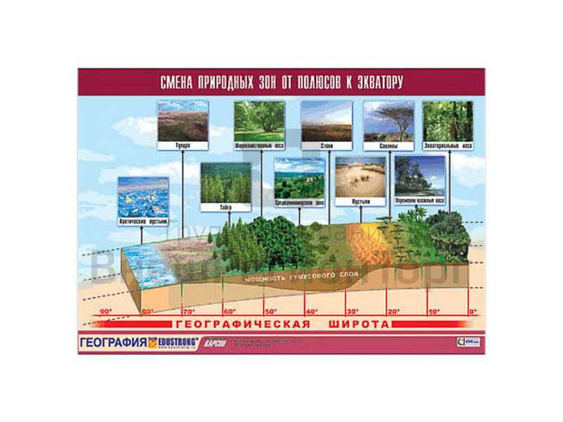 Подробное описание Таблица демонстрационная "Смена природных зон от полюсов к экватору" (винил 100x140)