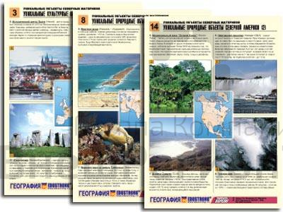 Таблицы по географии "Уникальные объекты северных материков", А4, 16 шт.