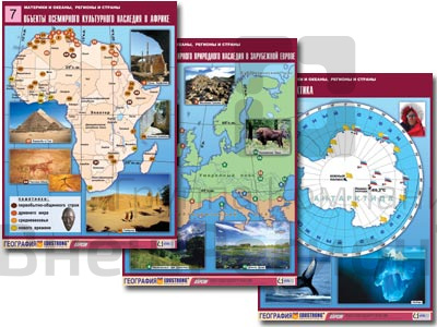 Подробное описание Комплект таблиц по географии "Материки и океаны, регионы и страны"
