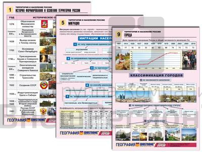 Таблицы по географии "Территория и население России", А4, 10 шт.