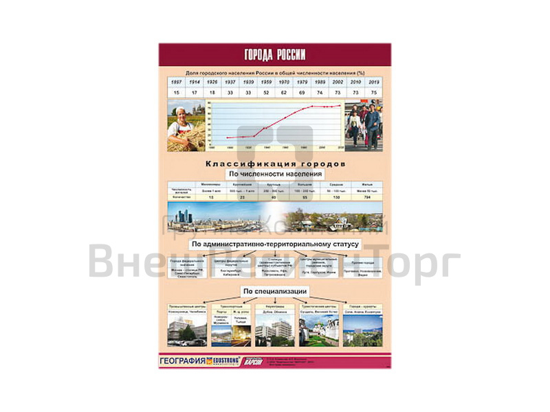 Подробное описание Таблица демонстрационная "Города России" (винил 100х140)