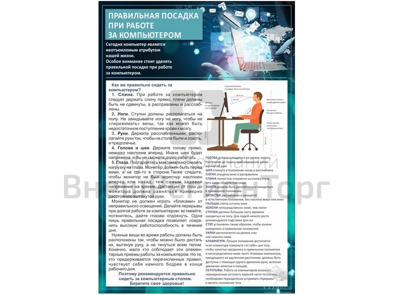 Подробное описание Стенд Правильная посадка при работе на компьютере