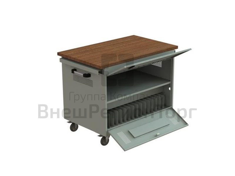 Тележка используется для хранения и зарядки 16 ноутбуков.