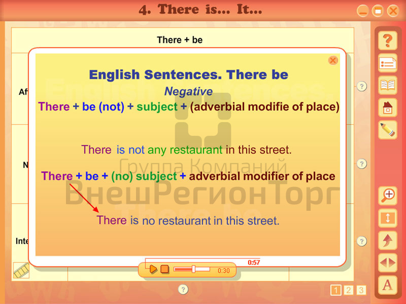 Теоретический материал наглядно представлен интерактивными таблицами, анимационными роликами и рисунками, иллюстрирующими правила образования и использования грамматических структур.