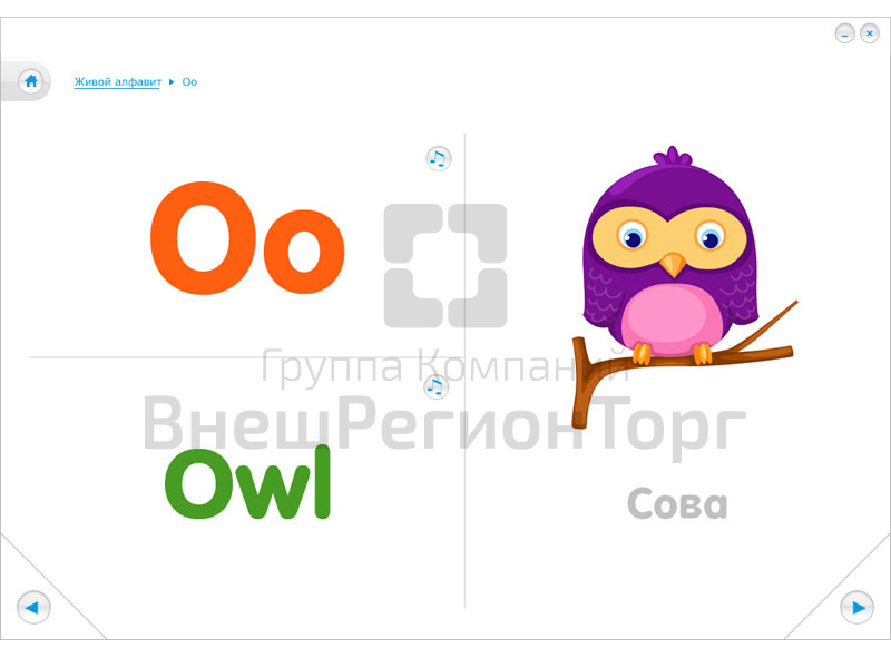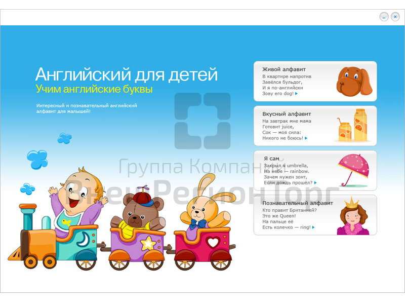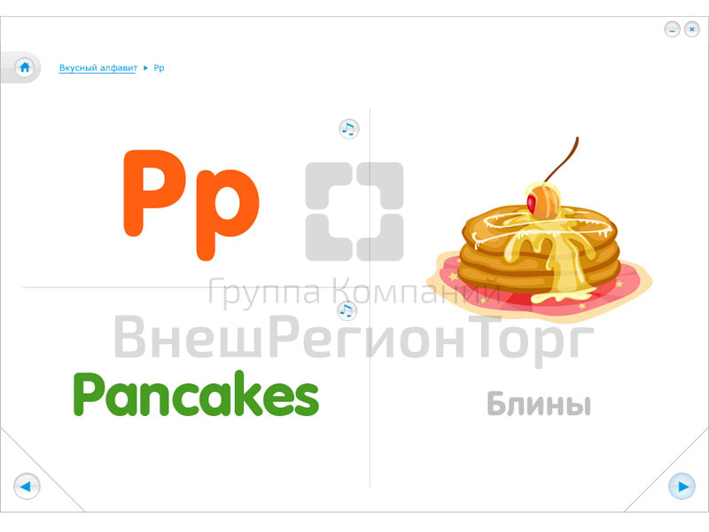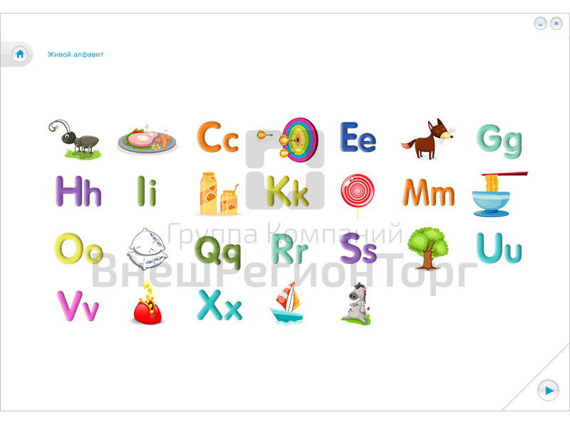 Программа представляет собой интерактивную азбуку. Все буквы и примеры слов интерактивной азбуки озвучены, к каждой подобрана яркая тематическая картинка.