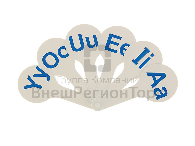 Представляет собой комплект пластинок, соединенных аналогично соединению деталей веера, с буквами, обозначающими гласные звуки английского языка. Буквы выполнены крупным шрифтом и нанесены яркой краской.