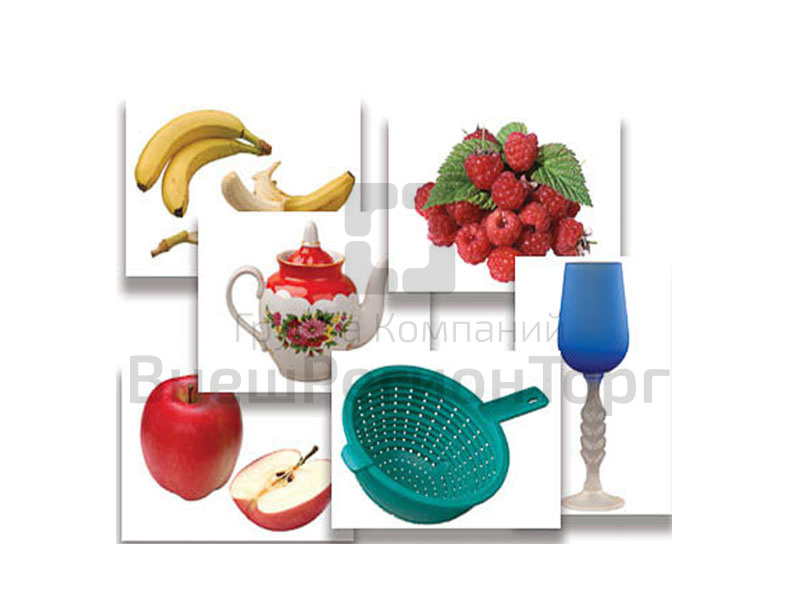 Подробное описание Набор картинок Фрукты, ягоды, орехи и Посуда 48 шт.