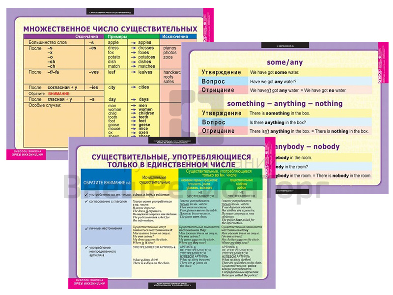 Подробное описание Набор таблиц по английскому языку Существительное. Местоимение. Наречие 9 шт.