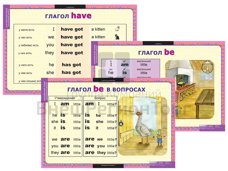 Подробное описание Набор таблиц по английскому языку Глаголы be, have, can, must 8 шт.