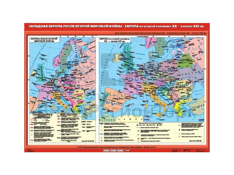 Подробное описание Учебная карта "Западная Европа после Второй мировой войны. Европа XX - начале XXI вв."