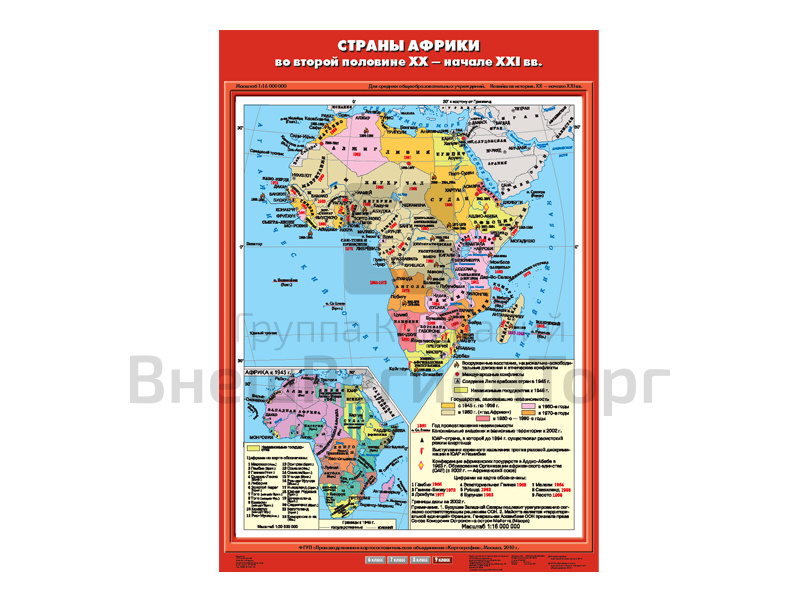Подробное описание Учебная карта "Страны Африки во второй половине XX - начале XXI века"