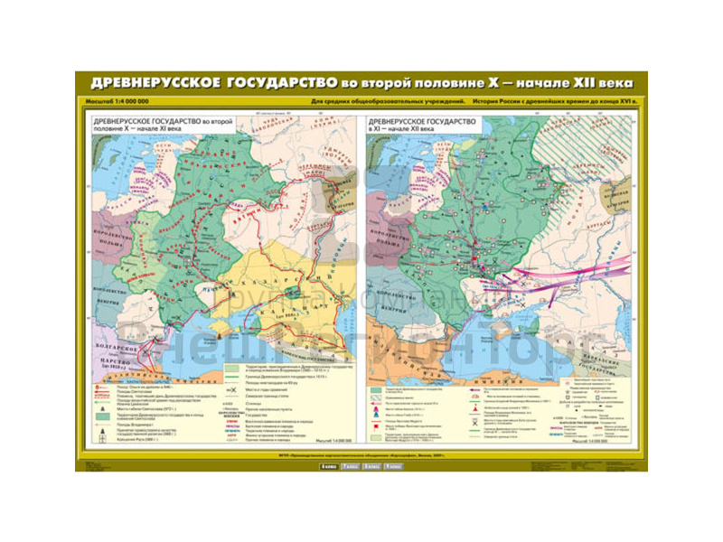 Подробное описание Учебная карта "Древнерусское государство во второй половине X - начале XII века"