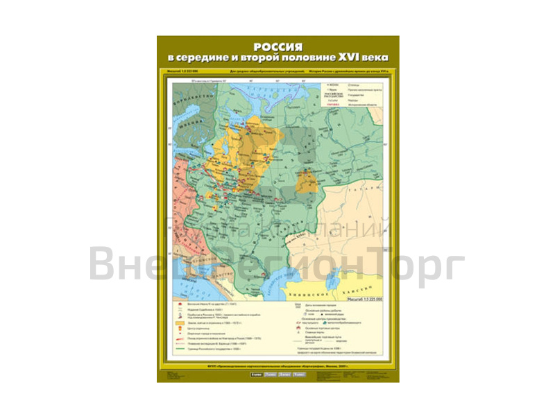 Подробное описание Учебная карта "Россия в середине и второй половине XVI века"