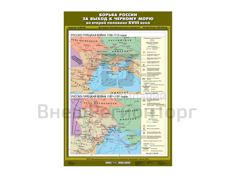 Подробное описание Учебная карта "Борьба России за выход к Черному морю во второй половине ХVIII века"