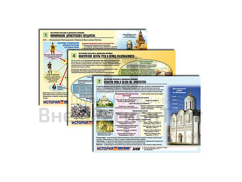 Подробное описание Комплект таблиц "История России с древних времен", А4, 10 шт.