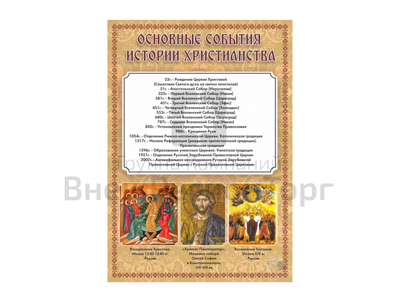 Подробное описание Стенд "ОСНОВНЫЕ СОБЫТИЯ ИСТОРИИ ХРИСТИАНСТВА" 70х100 см