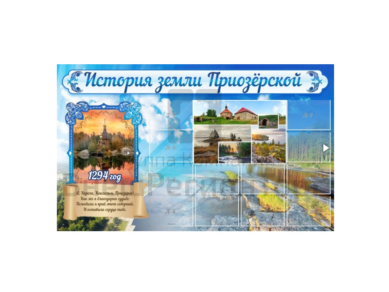Подробное описание Стенд "ИСТОРИЯ ЗЕМЛИ ПРИОЗЕРСКОЙ" 200х120 см